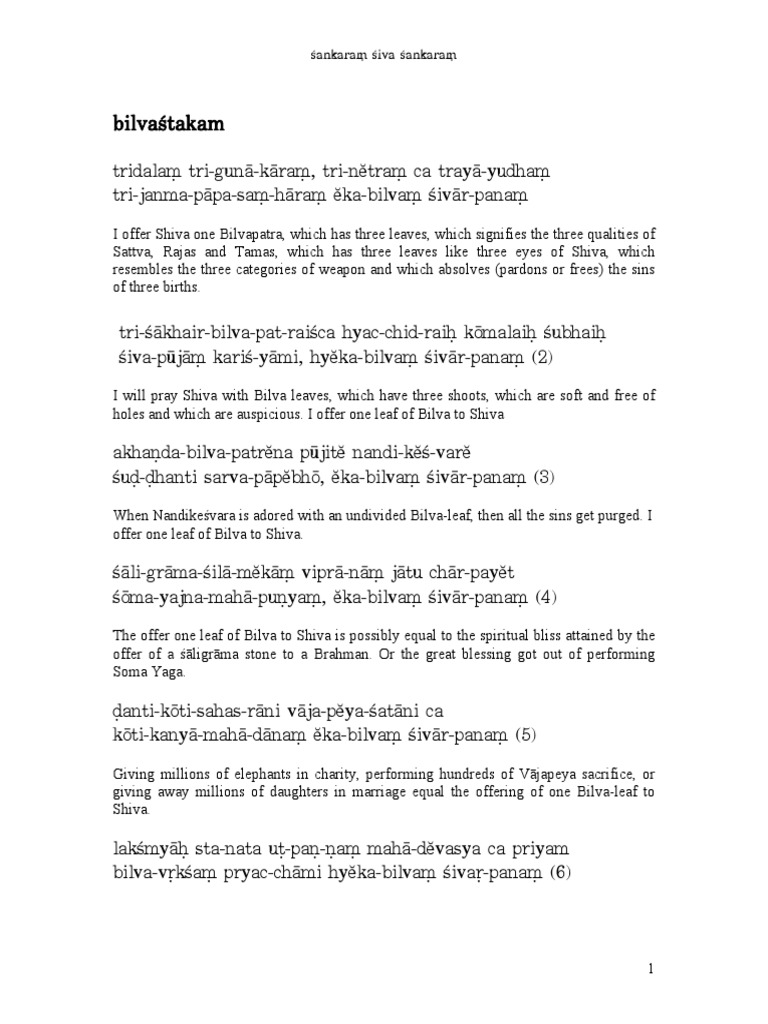 Eka Bilvam Leaf : I offer one leaf of bilwa to lord shiva , who is the lord of three worlds, who is the purest in the three 4. Eka Bilvam Leaf / So i ask this tree to offer a bilva leaf to lord shiva.